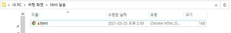 이 파일을 실행해보면 웹브라우저가 실행되는데 이는 html이라는 확장자를 운영체제가 어떤 프로그램으로 열어야 하는지를 알고 있기 때문에 브라우저를 실행시켜준다.