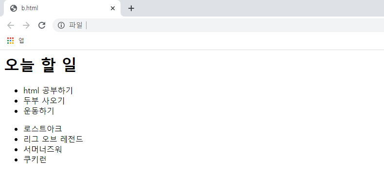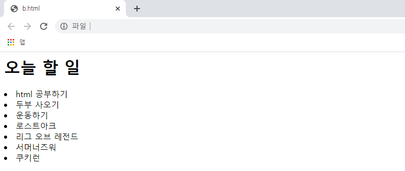 이 b.html을 켜보면 다음과 같이 나오는 것을 확인할 수 있다.