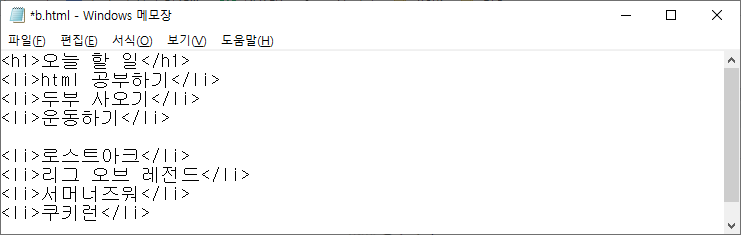 기본적으로 리스트를 나타내는 태그는 <li></li>이다.