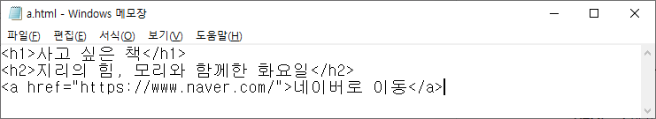 "네이버로 이동"이라는 텍스트를 누르면 기존 페이지에서 "https://www.naver.com/"으로 이동하게 된다.