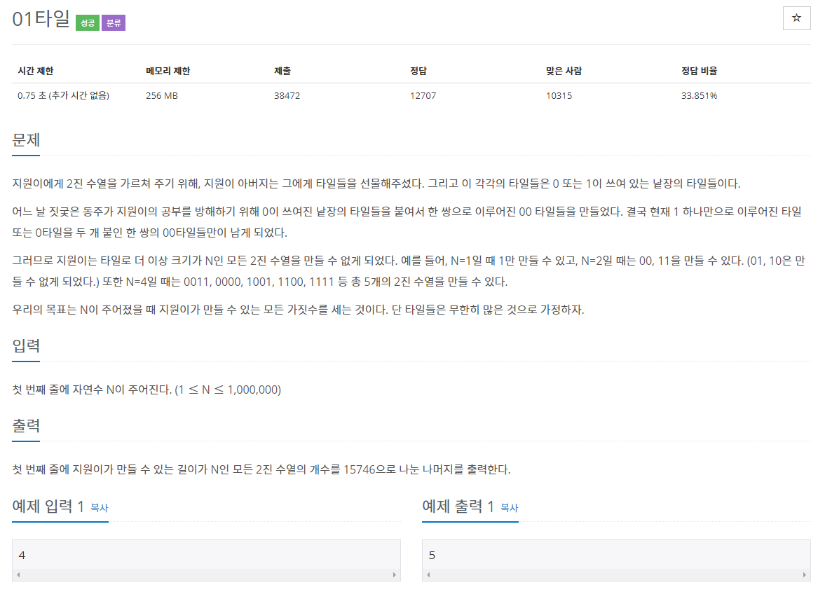 - 왜 피보나치일까 고민을 해본 결과, 끝이 00인 경우 (N - 2)의 수와 끝이 1인 경우 (N - 1)를 더해주면 N일 때의 경우의 수가 나온다는 것을 알 수 있었다.
